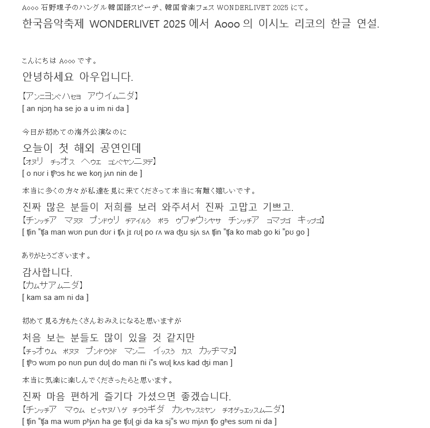 Aooo石野理子ハングル韓国語スピーチ。