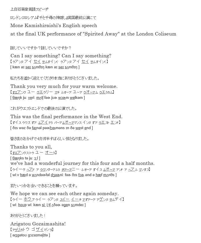 上白石萌音大千穐楽英語スピーチ。