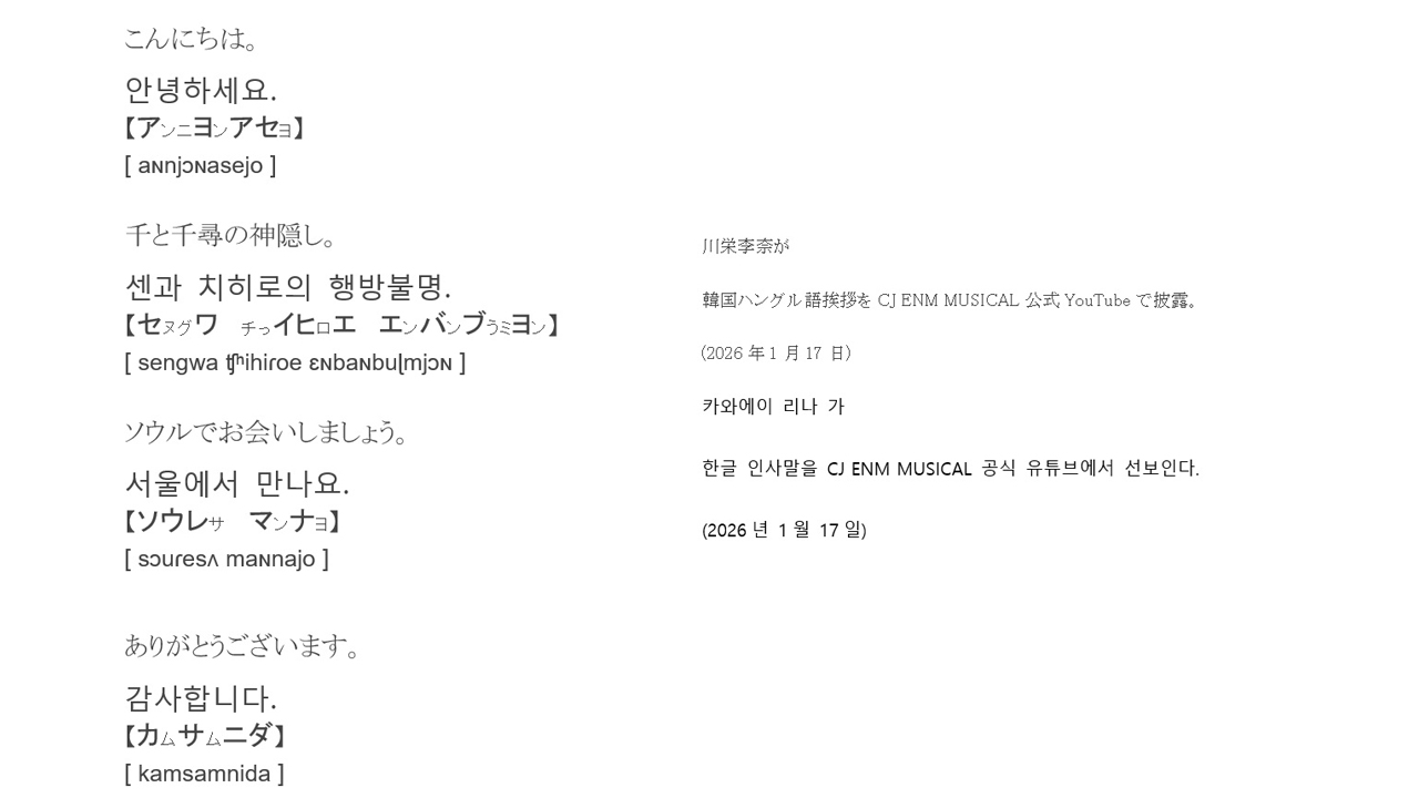 韓国エンターテインメント事業CJ ENM MUSICALでの舞台『千と千尋の神隠し』韓国ソウル公演紹介動画にて。