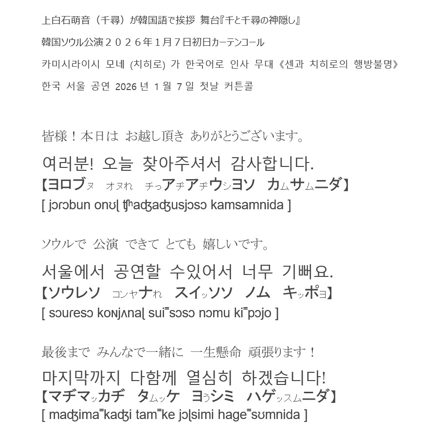 韓国エンターテインメント事業CJ ENM MUSICALでの舞台『千と千尋の神隠し』韓国ソウル公演紹介動画にて。